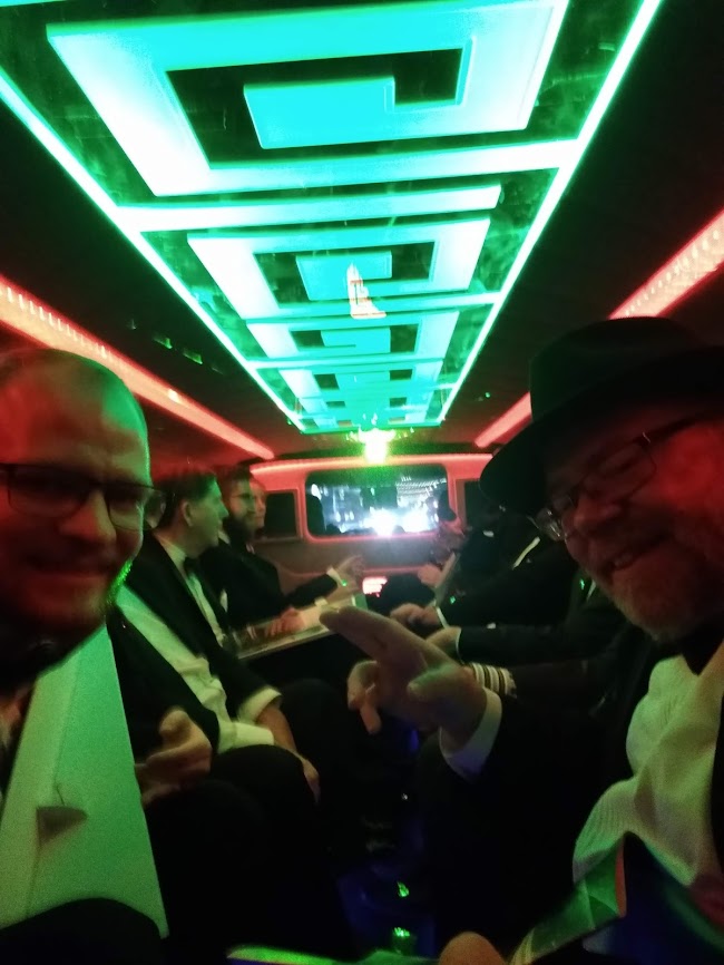 After changing into our tuxes, limos carried us off to the Taglyan Complex for the main event. The food was amazing–bread rolls, and salad, and steak, and roast veggies, and delicious salmon, and coffee, and the most scrumptious, richest mousse I’ve ever had for dessert. Everyone seemed to be equally nervous about giving their acceptance speeches, but they all went pretty well. There were a couple times I teared up listening to my fellow winners, and plenty of laughs.